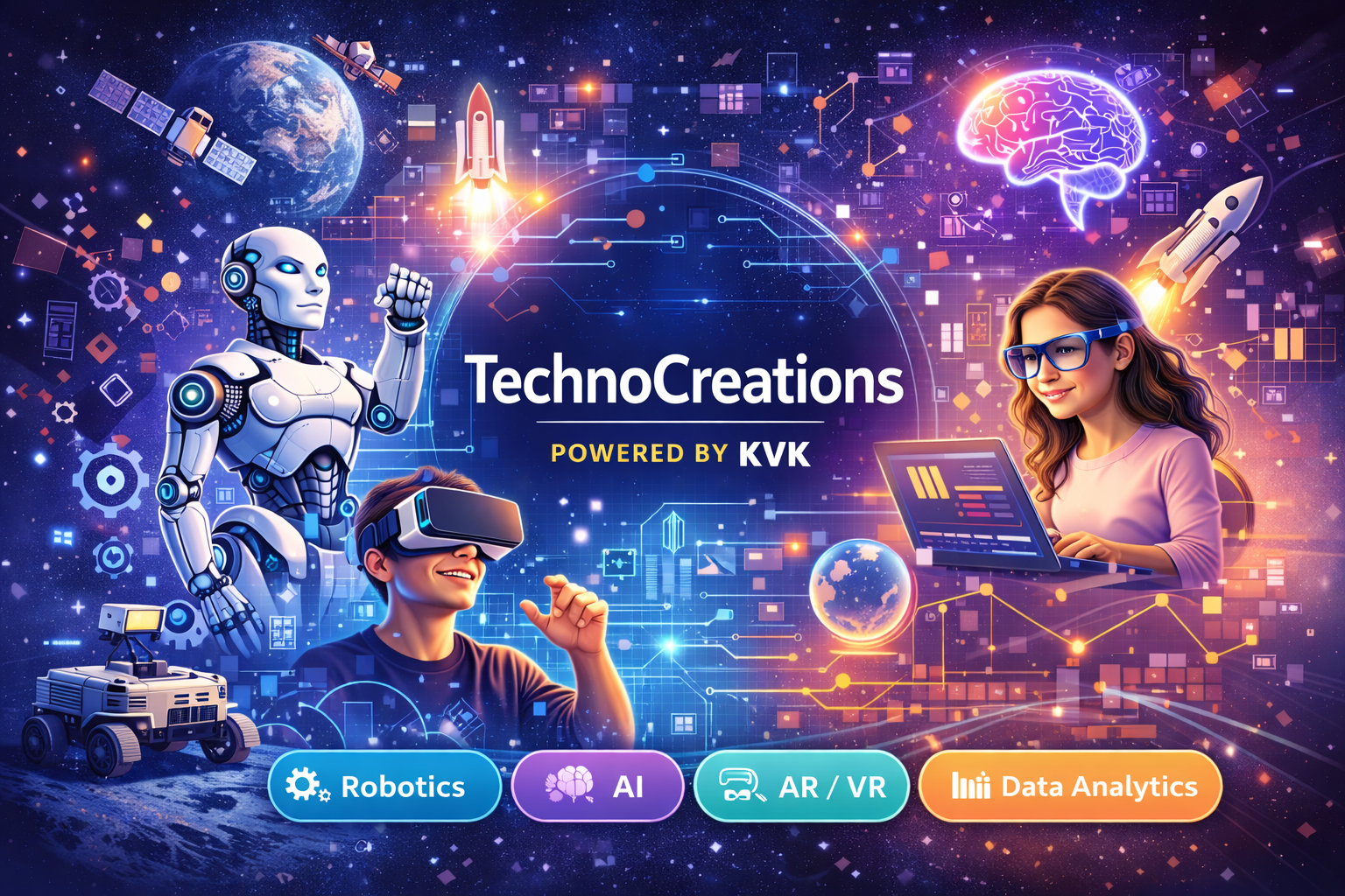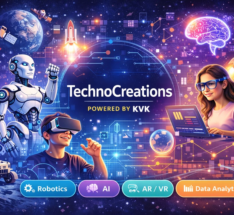 Technocreation, established in 2025, is an education-focused organization delivering next-generation STEM education through Robotics, Artificial Intelligence (AI), Augmented Reality (AR), Virtual Reality (VR), and activity-based Science & Mathematics lab programs.