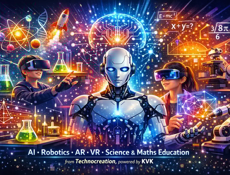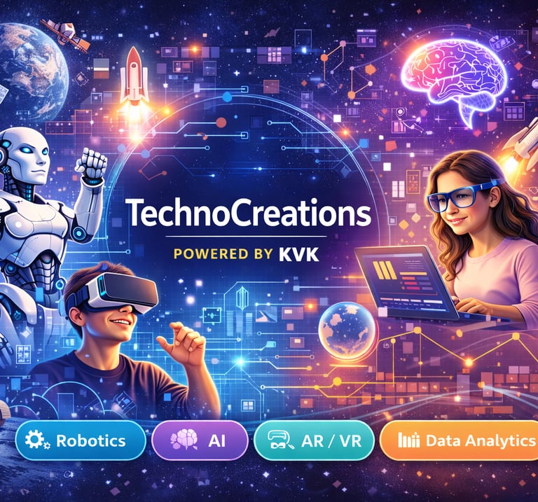Technocreation, established in 2025, is an education-focused organization delivering next-generation STEM education through Robotics, Artificial Intelligence (AI), Augmented Reality (AR), Virtual Reality (VR), and activity-based Science & Mathematics lab programs.