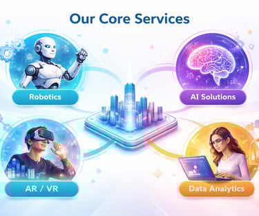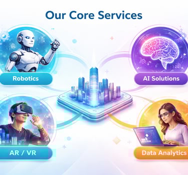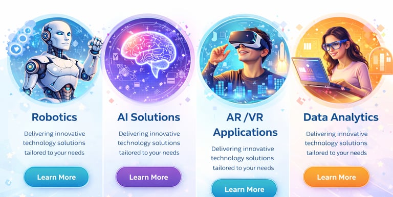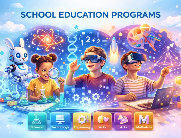 Technocreation delivers integrated STEM programs combining Robotics, AR/VR, Science, and Mathematics for holistic learning.